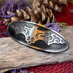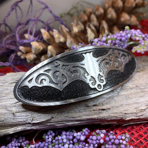 Pewter CelticBat Hair Clip is a perfect accessory to dress up a ponytail, bun or any hair style. The detail on this piece is amazing - you can see every detail!