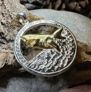 Solid sterling silver Great White Shark Pendant with 14k gold plate detail on a chain