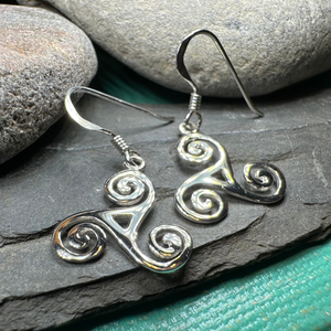 Solid Sterling Silver Celtic Spiral Drop Earrings