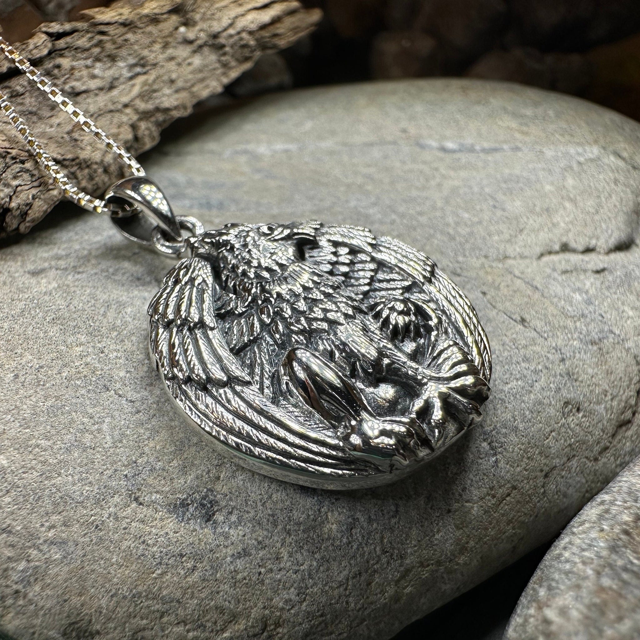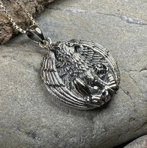 Crafted from sterling silver, this unique necklace reflects the power and nobility of the griffin.