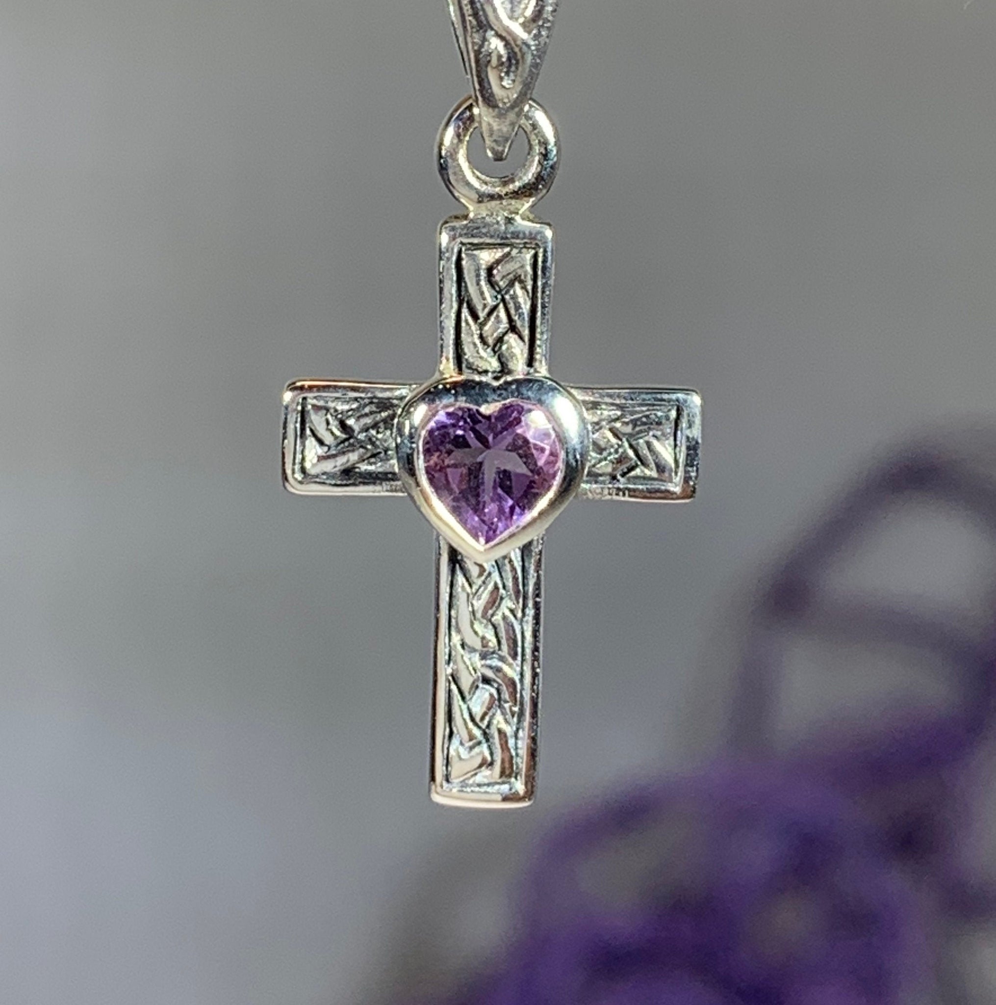 This beautiful Celtic Cross has a heart shaped gemstone center and lovely Celtic detailing - even the bail has Celtic knot work on it!