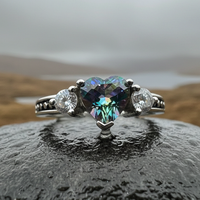Solid Sterling Silver Mystic Topaz Heart Ring