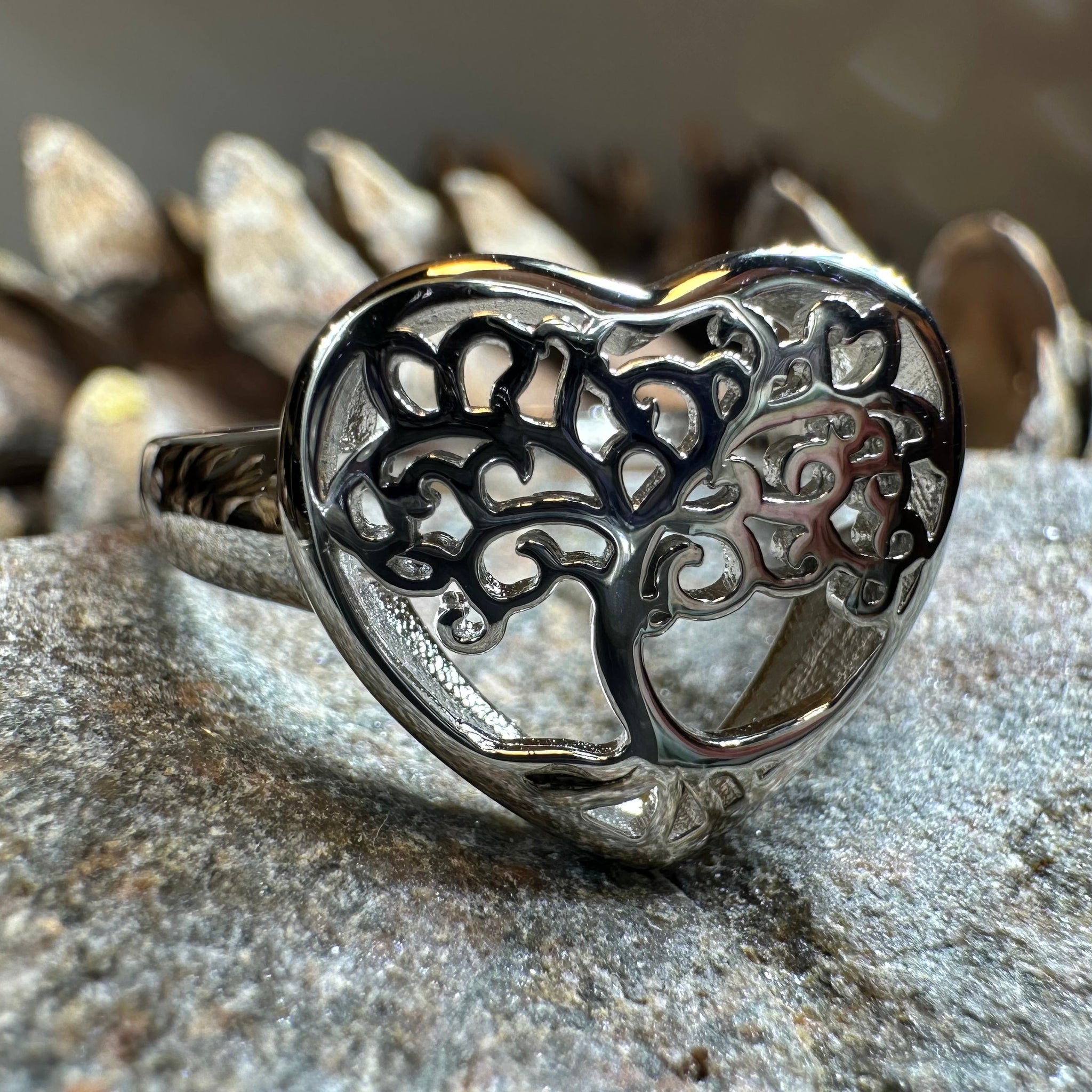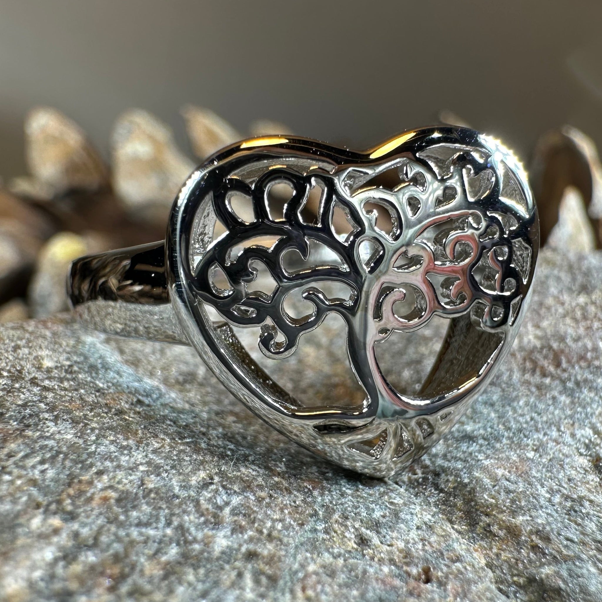 A unique design combining the traditional elements of a tree of life in a heart design - beautiful highly polished sterling silver.