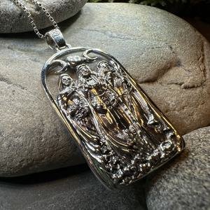 Solid Sterling Silver Hecate Maiden Mother Crone Pendant with sterling silver chain.