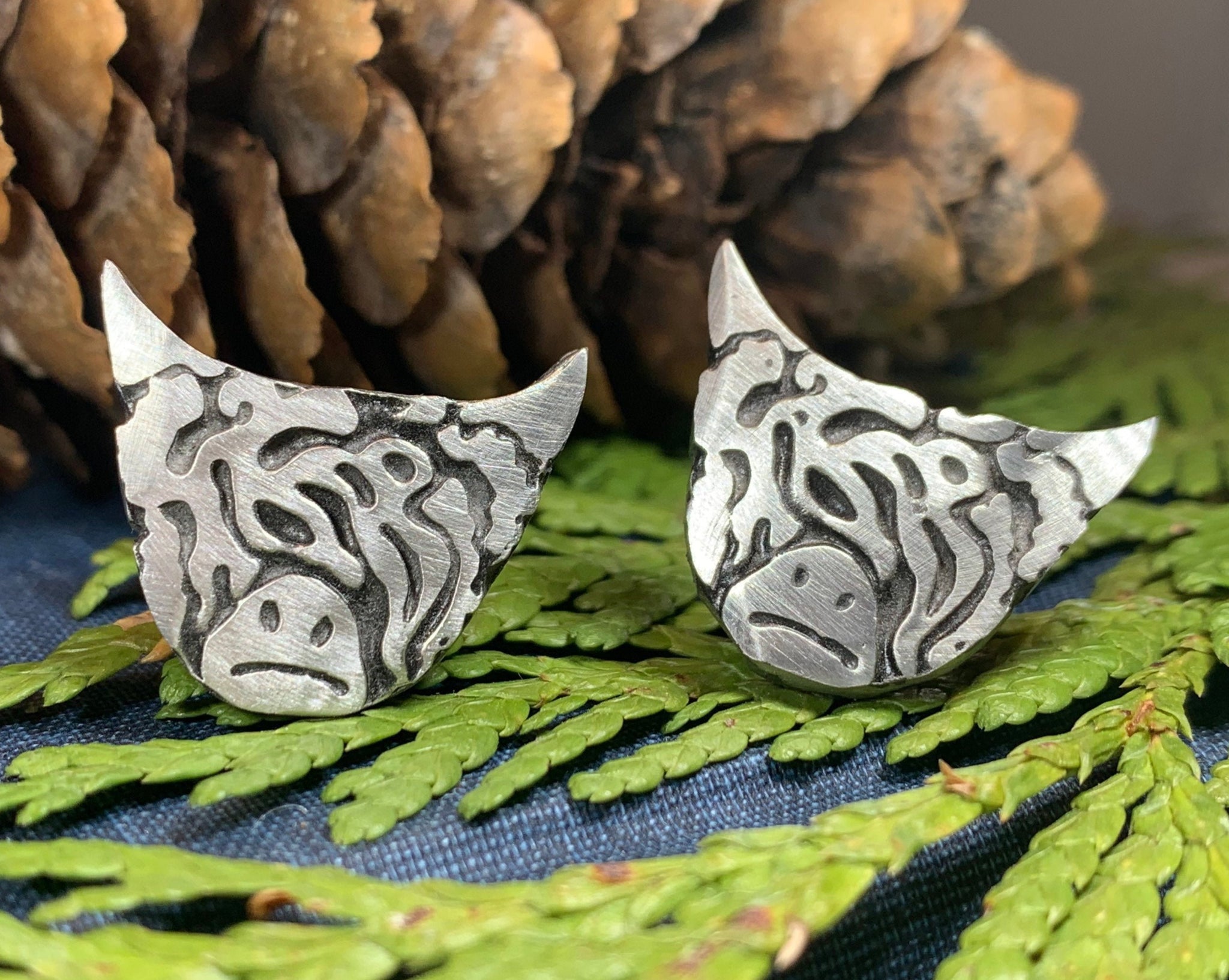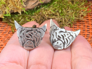 A highly attractive pair of Celtic Highland Cow Cufflinks, featuring a satin finish.