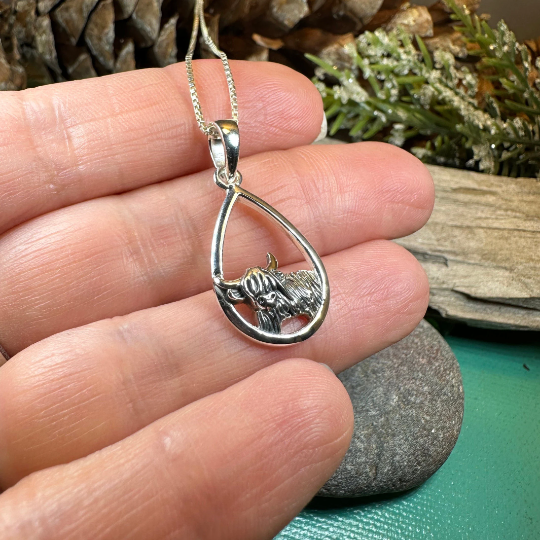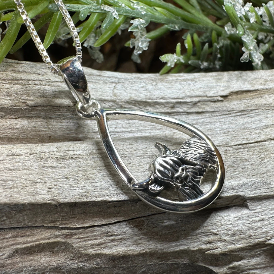 So excited to add this to our collection! A lovely detailed Highland cow face that makes us all smile. If you love these super cute Highland cows that are seen all over the Highlands, this necklace is for you. Made with solid sterling silver his bushy hair covers his face with one little eye peeking out!