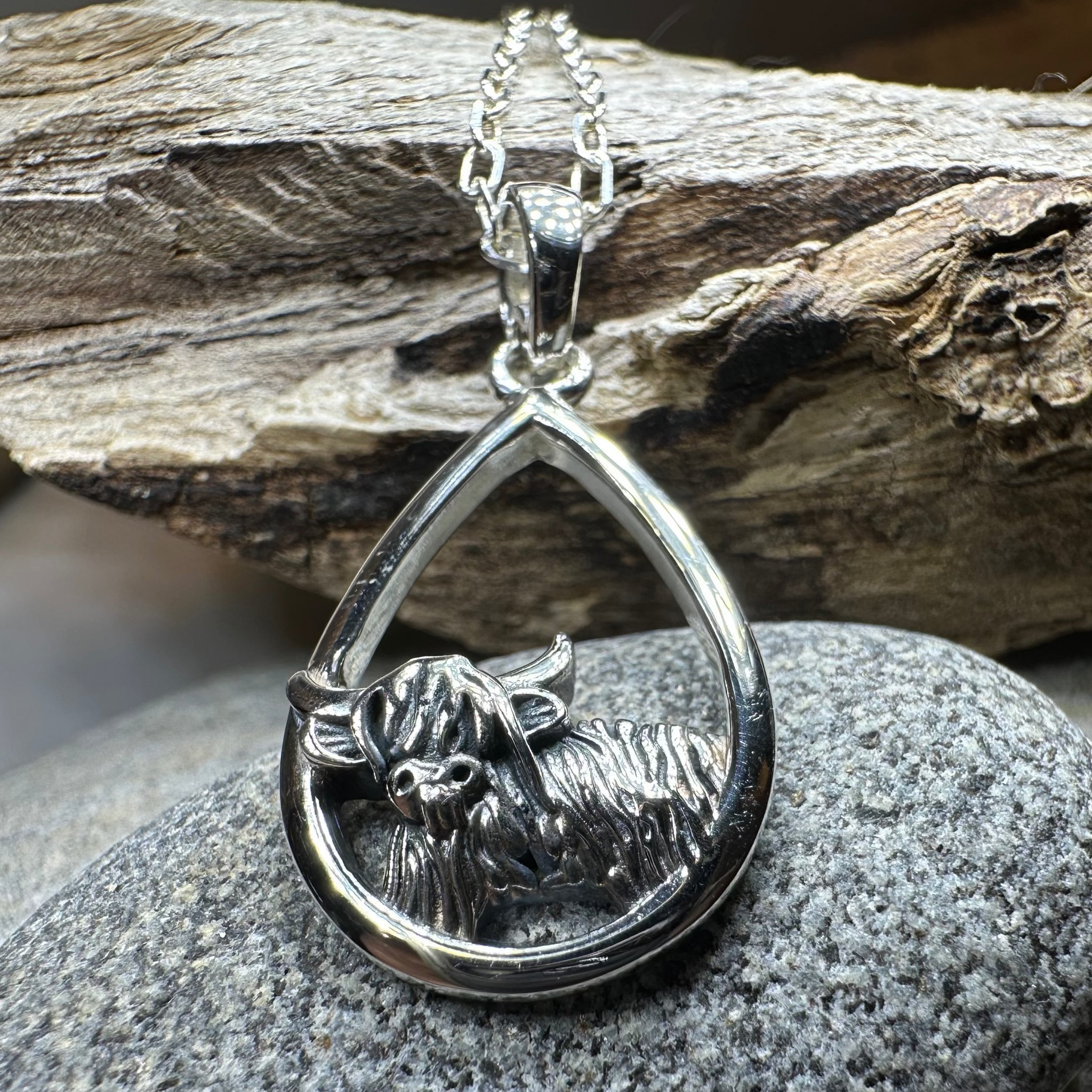So excited to add this to our collection! A lovely detailed Highland cow face that makes us all smile. If you love these super cute Highland cows that are seen all over the Highlands, this necklace is for you. Made with solid sterling silver his bushy hair covers his face with one little eye peeking out!