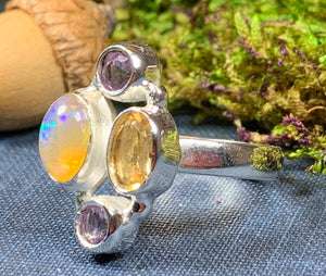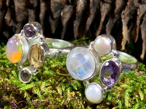 This solid sterling silver has faceted gemstones of your choice: Moonstone/amethyst & pearl, Opal/citrine & amethyst.