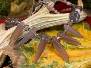 The rich colors of nature - lavender, pale green, petal pink and grey - combine to create a beautiful work of art. Accented with seed beads and Swarovski crystal. Each piece is as unique as your loved one!