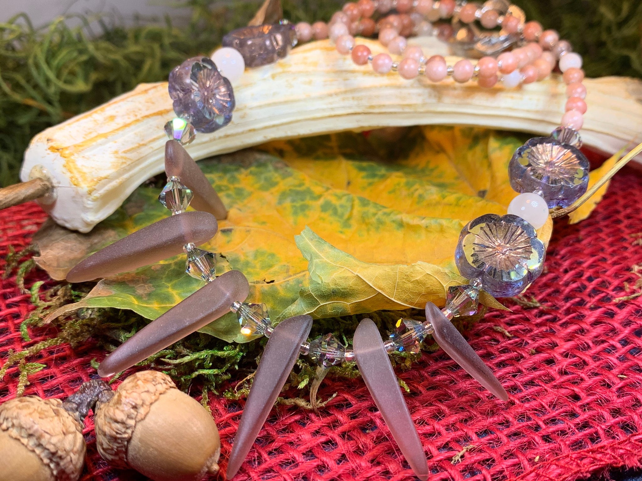 Authentic Czech "dagger" points with a gorgeous pastel colors with an artisan mix of natural agate stone, Swarovski crystals, and Czech beads to create an unforgettable one of a kind necklace for that special person in your life - or treat yourself!