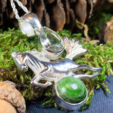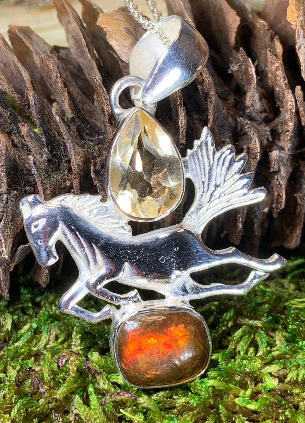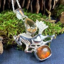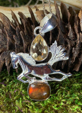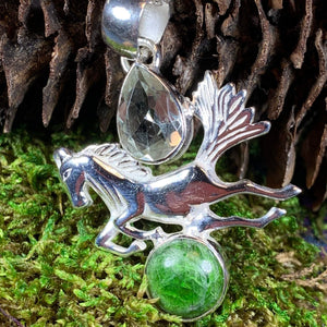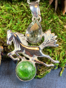 Horse pendant is 1" x 1" in size and comes on an 18" chain. Hallmarked 925.