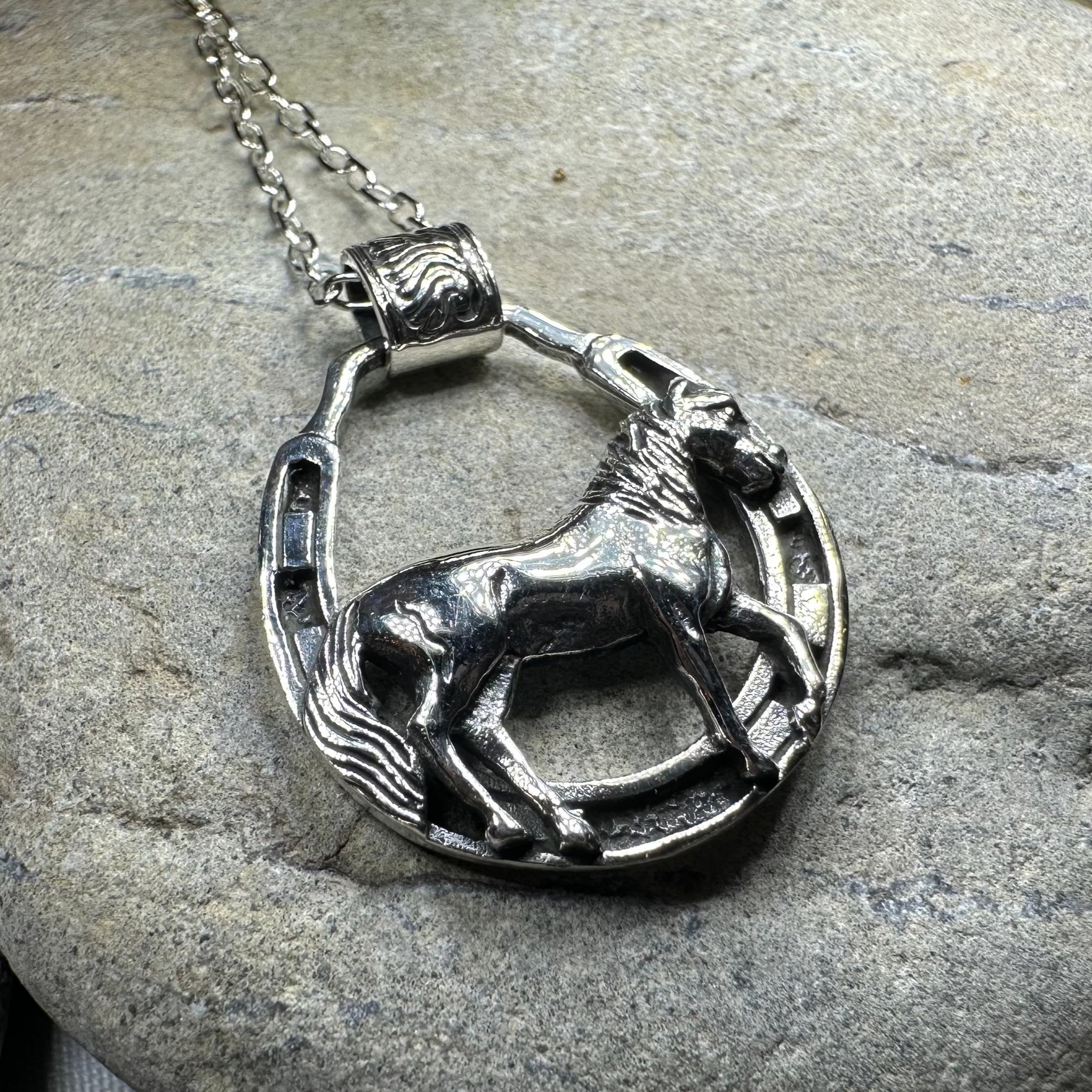 This necklace is a wonderfully detailed sterling silver Horse pendant, cast in a glorious high shine finish accented with a good luck horse show. Perfect in every way! Inspired by our love of horses!