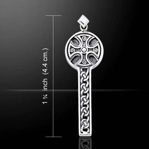 This knot work cross pendant is cast in sterling silver and has an intricate design reminiscent of classic Celtic crucifixes. Makes a beautiful gift.