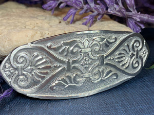 Pewter Celtic Knot Hair Clip is a perfect accessory to dress up a ponytail, bun or any hair style. The detail on this piece is amazing - you can see every detail!