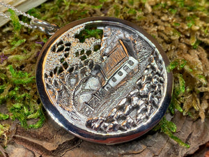 This beautiful pendant captures the detail of cottage used in the movie The Quiet Man with John Wayne. In this 3-D penant - the cottage is set back in the pendant with the surrounding landscape set forward to make the pendant appear just as the real cottage!