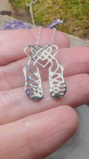 Solid Sterling Silver Celtic Dance Shoes Pendant with Celtic Heart Details