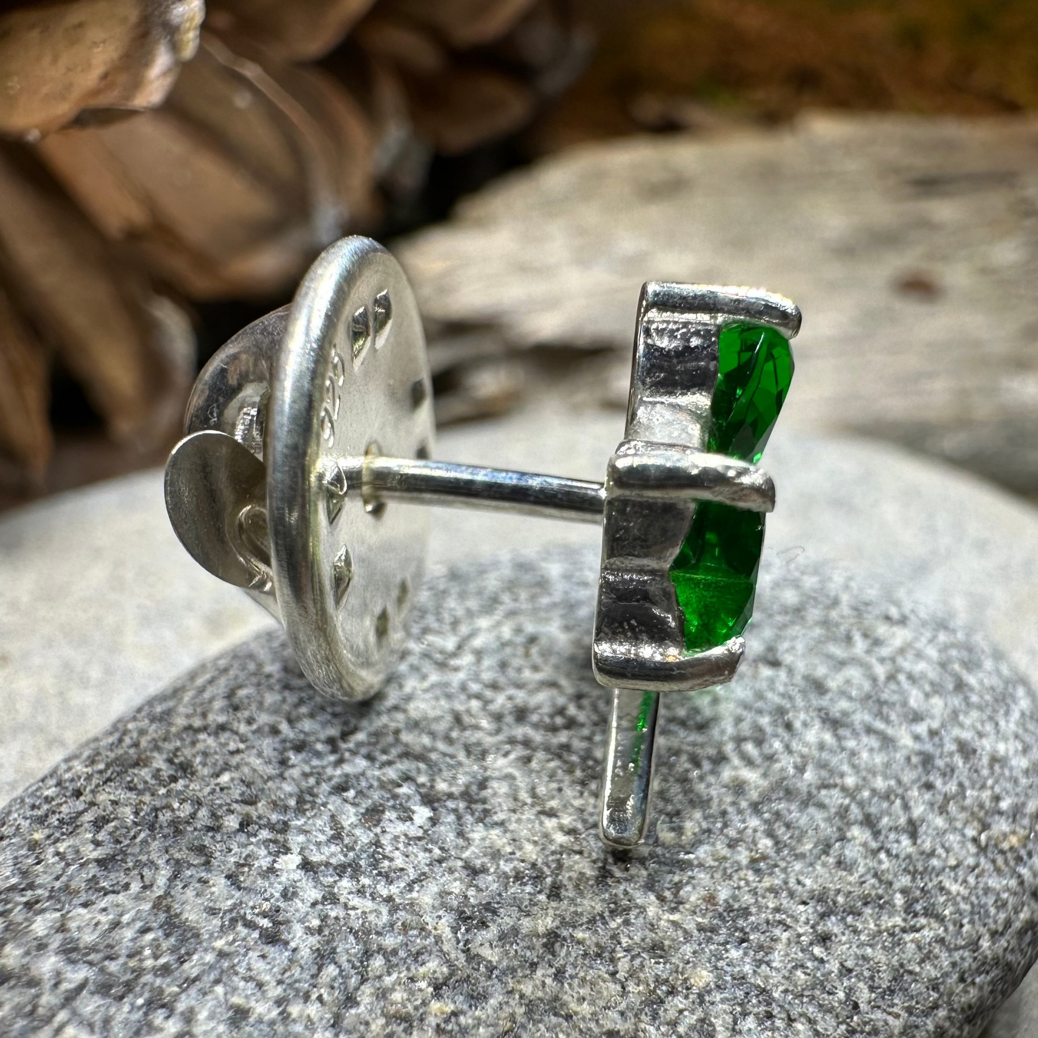 This beautiful Celtic Shamrock represents strength, family and heritage. A beautiful pin made in solid sterling silver with bright shining emerald green cubic zirconia gemstones.