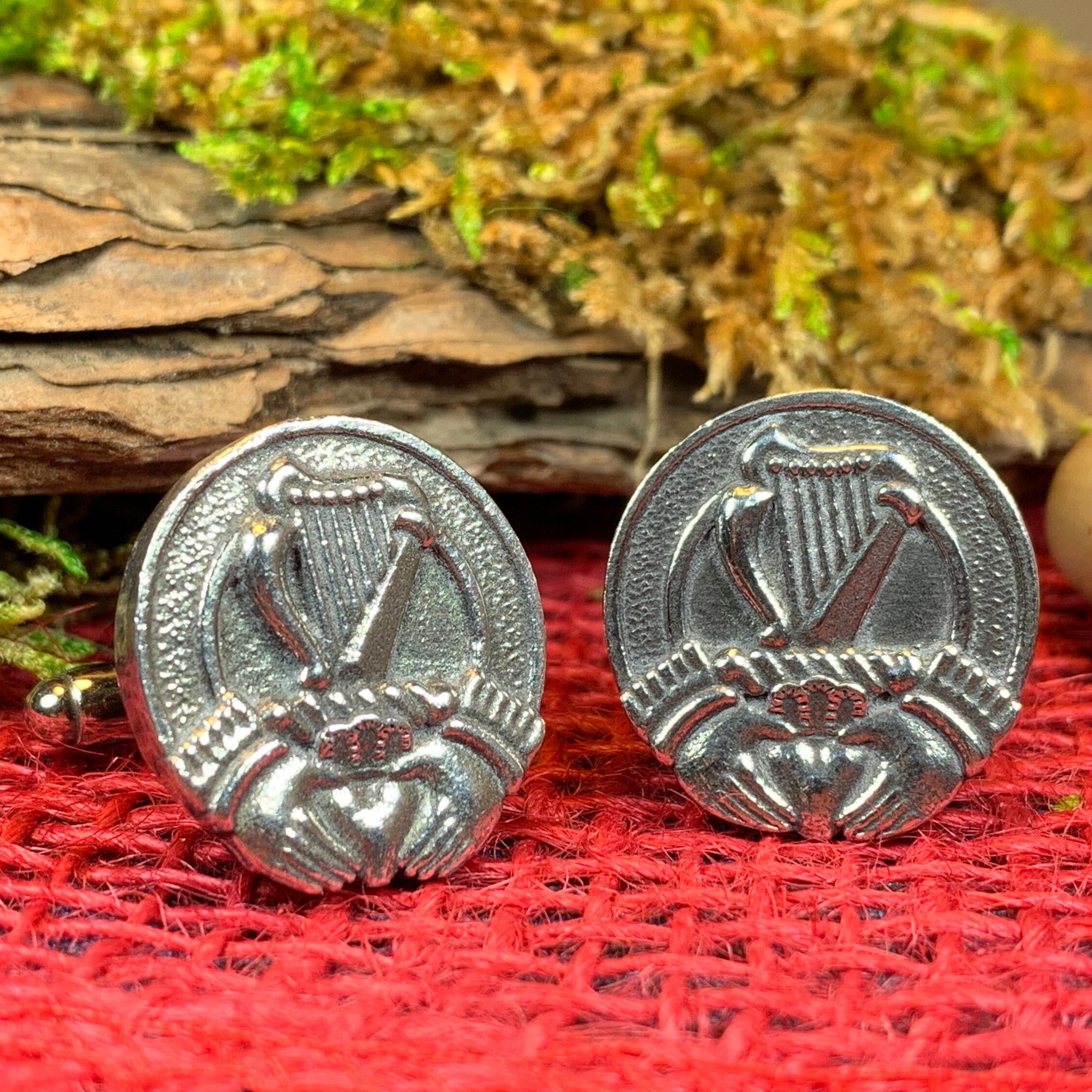 A highly attractive pair of Celtic Claddagh & Harp Cufflinks.