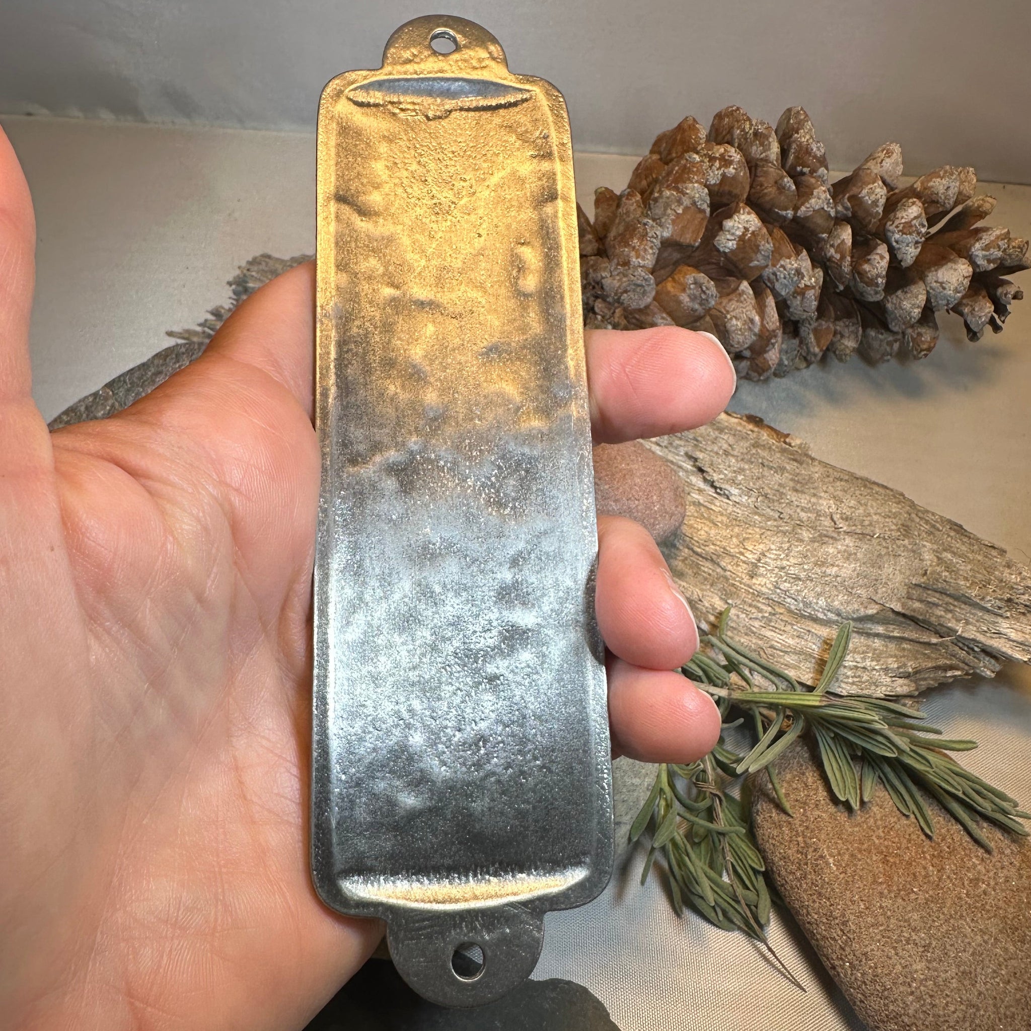 The perfect plaque to hang in the home entry to offer a blessing for the home and the family inside! Solid metal in silver enamel finish. Ready to hang, complete with two ½” screws. Window boxed. 1 ½” W x 6” H.