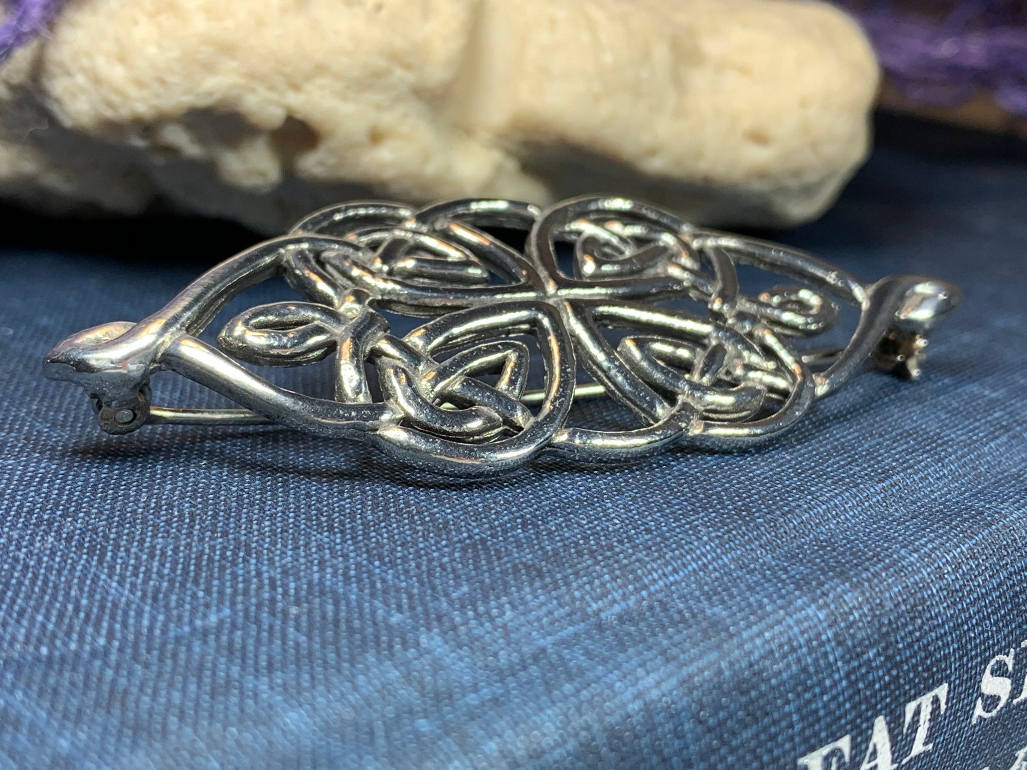 This brooch uses celtic interlacing to form a strong but intricate woven celtic knot.