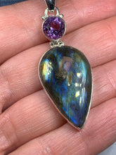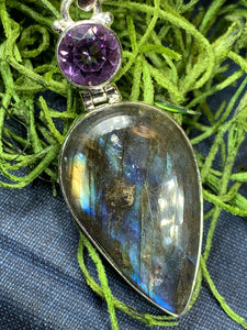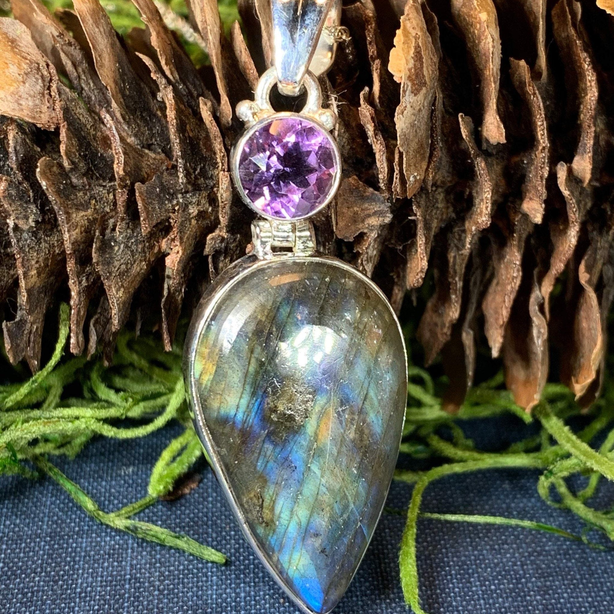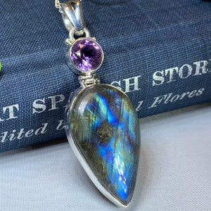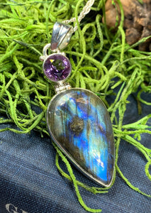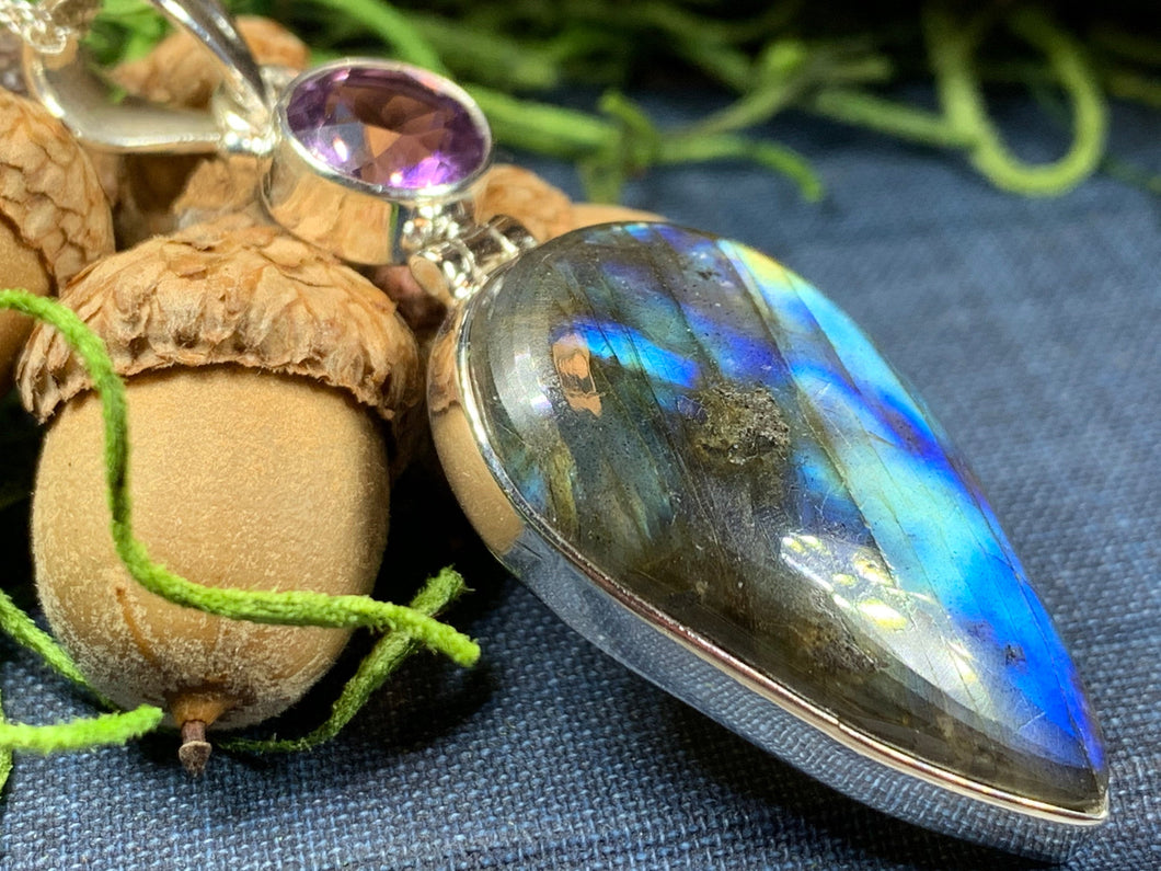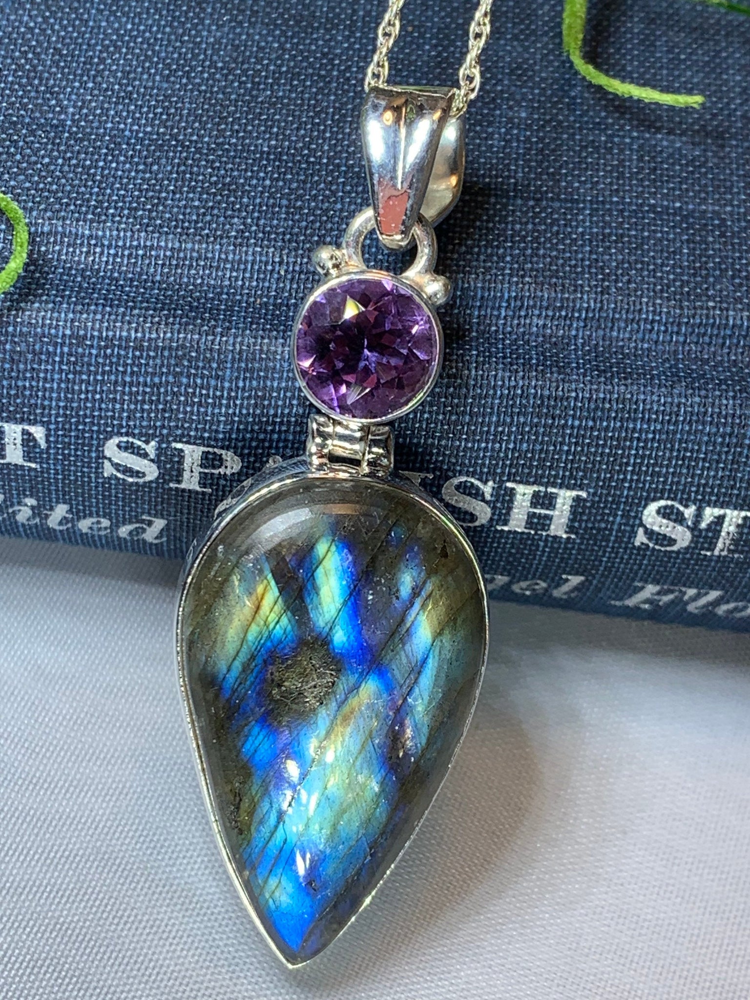This Solid Sterling Silver Gemstone Labradorite pendant on an 18" chain. The blue fire Labradorite glows with purple, blue, green and gold - a magical stone that is sure to delight your loved one!