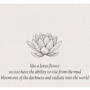 The Lotus flower is regarded in many different cultures as a symbol of purity, resilience, inner-beauty and rebirth. Its characteristics are a perfect symbol for the human condition: even when its roots are in the dirtiest waters, the Lotus produces the most beautiful flower.