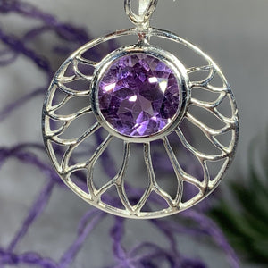 Beautiful Celtic Flower Necklace in Sterling Silver- a symbol of lasting life and love - with lovely natural gemstone round shaped amethyst or citrine stone (Grade AA stone) is set in the center to add vibrant color. Measures 1" x 1" in size - solid sterling silver on a chain.
