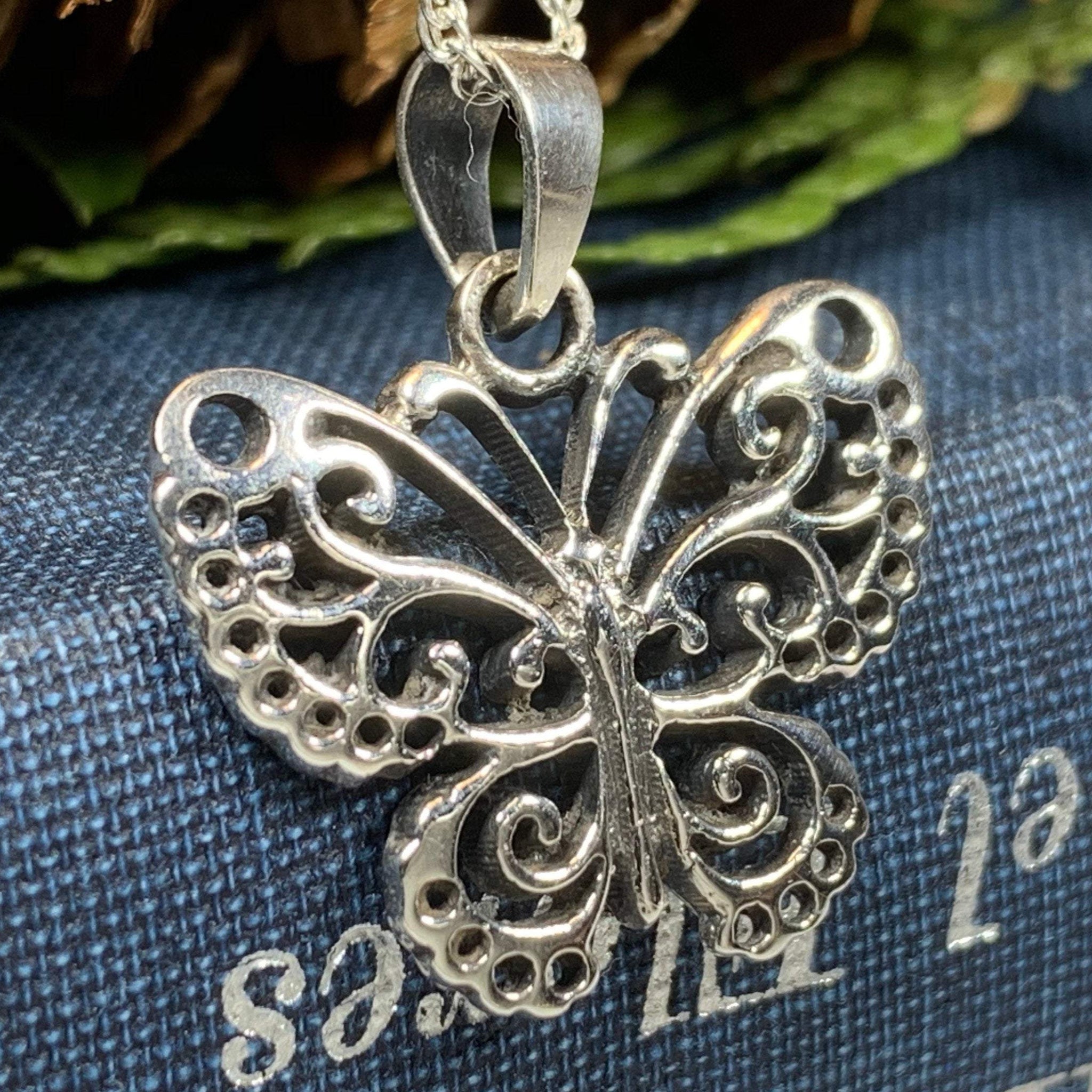 This beautiful Celtic butterfly pendant is a unique piece that will be loved for a lifetime. Sterling silver on a chain.