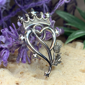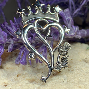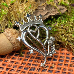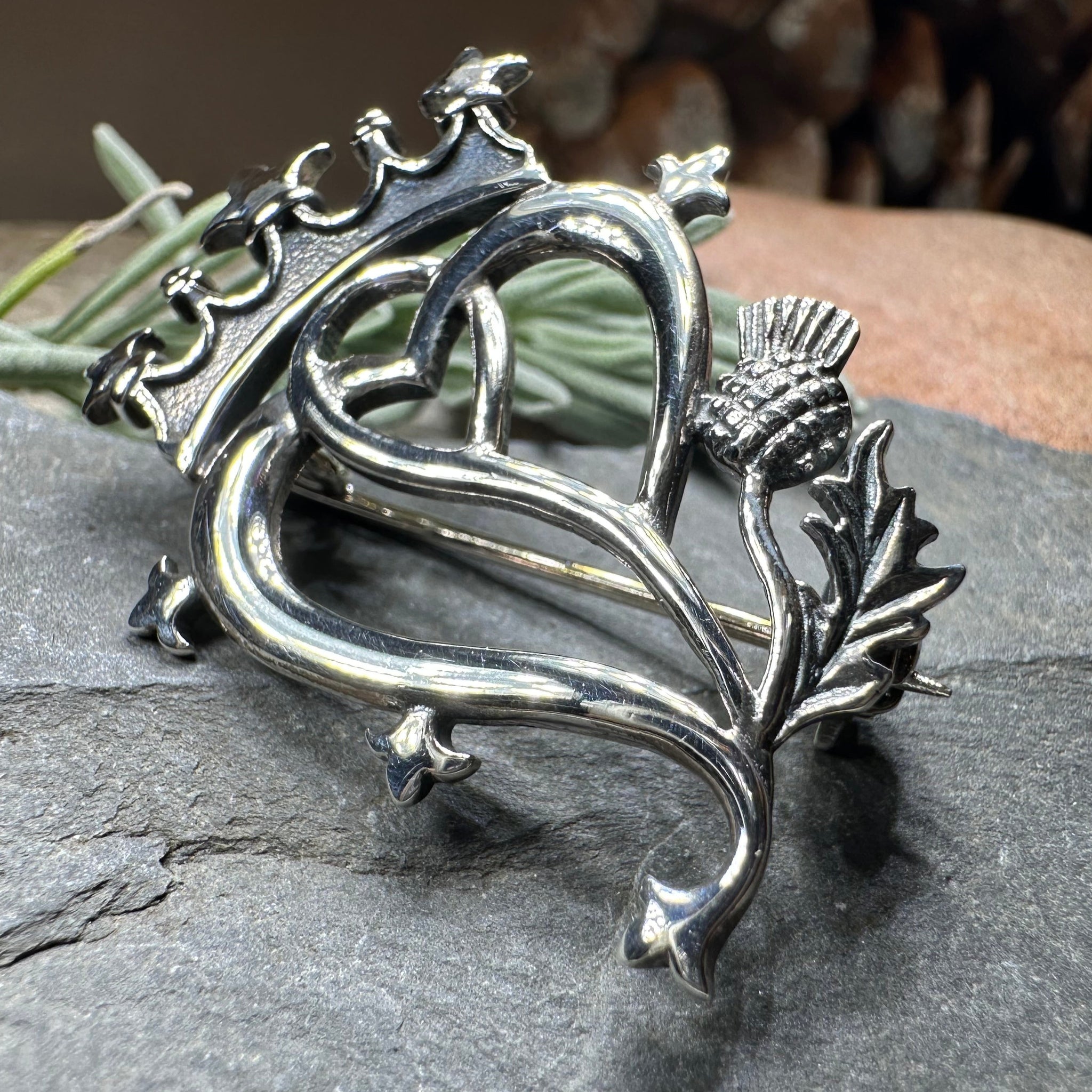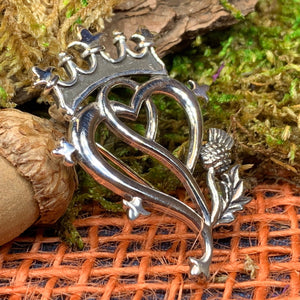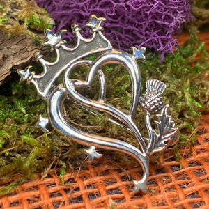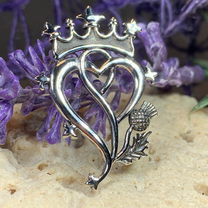 The Luckenbooth brooch has motifs similar to the Claddagh ring, also using the heart and crown. Heart-shaped brooches in parts of Europe date back to late medieval times. A beautiful gift for a new bride, new mother or loved one.
