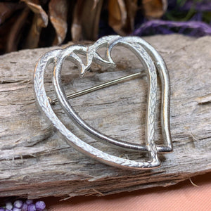 It is usually in the shape of two entwined hearts, symbolizing the bonds of love. This brooch has elegant lines and a soft satin finish that is feminine and classic.