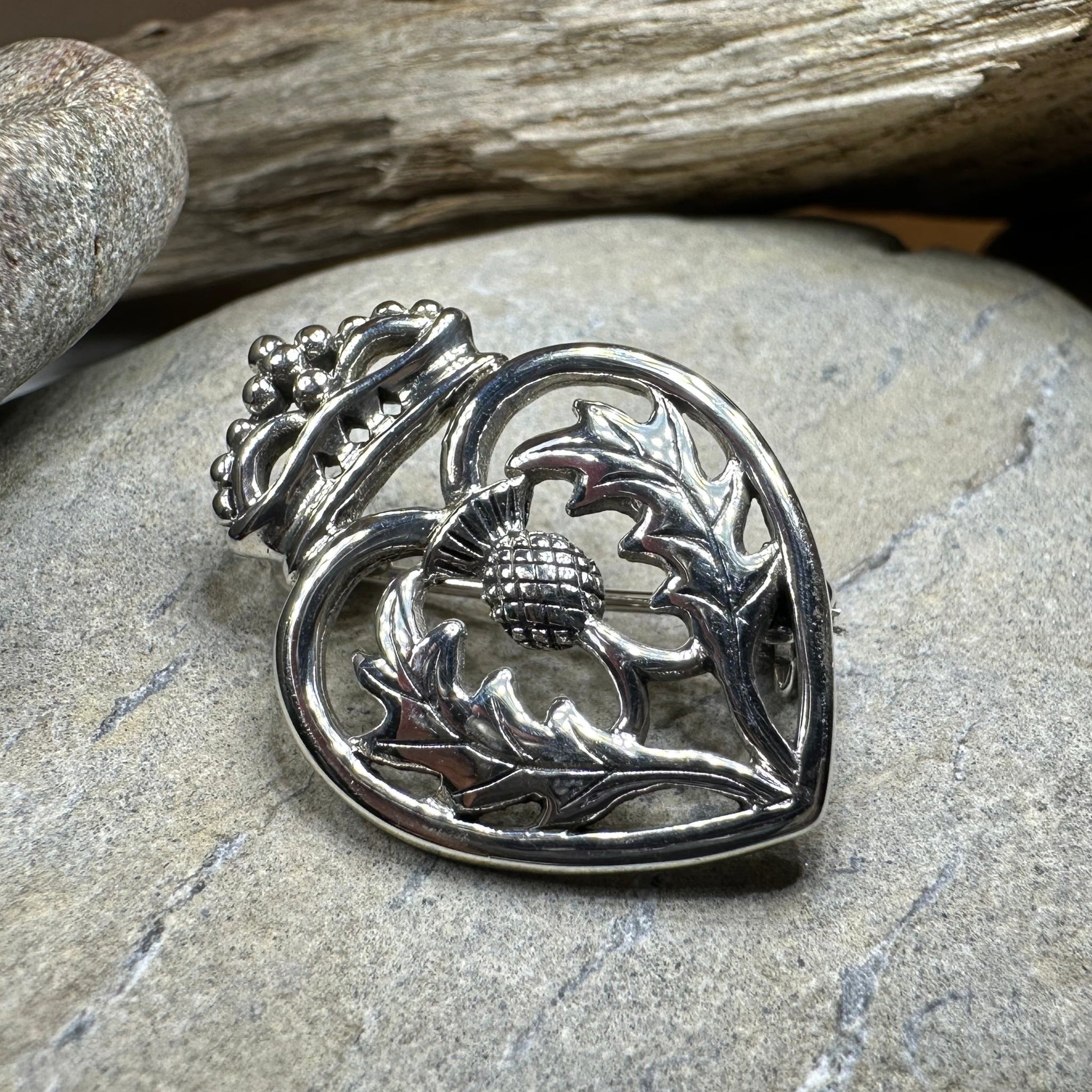 Throughout Celtic regions, the thistle represents bravery, devotion, durability, strength, and determination. This beautiful sterling silver Luckenbooth pin honors the Celtic traditions and would make a wonderful gift for any new bride or loved one!