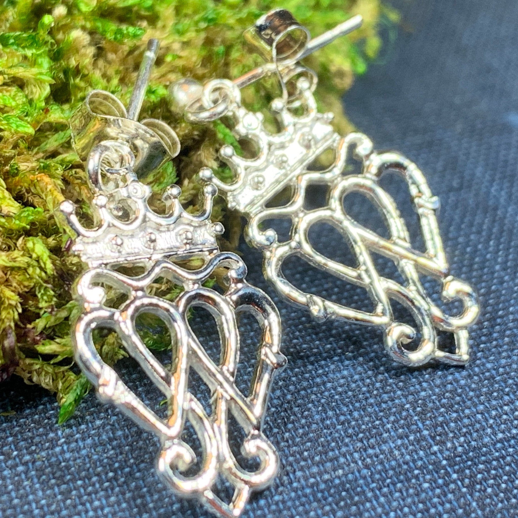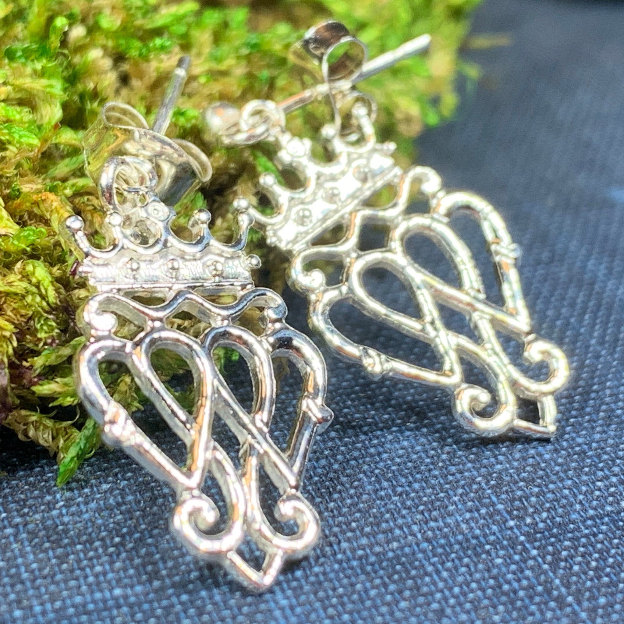 A highly attractive pair of Sterling Silver Post Earrings with a design based on the unique Luckenbooth.