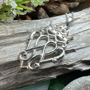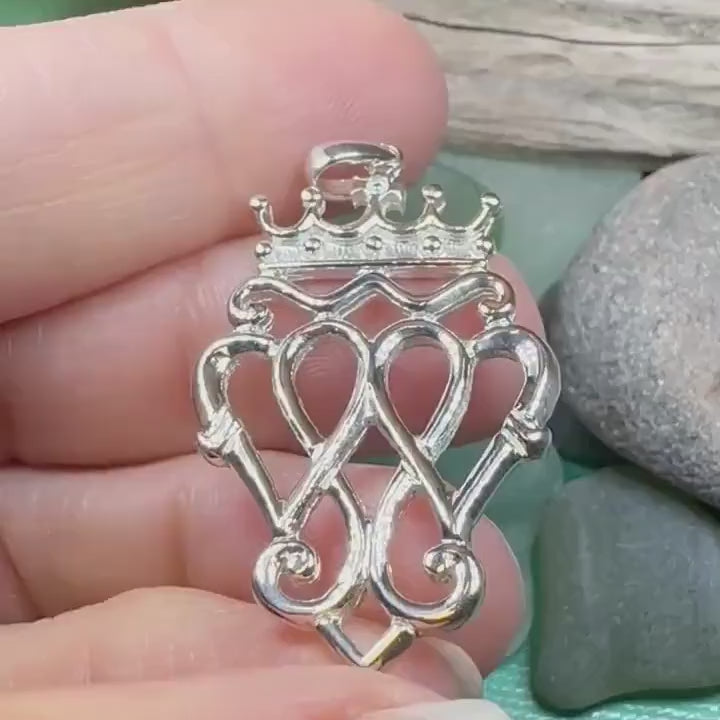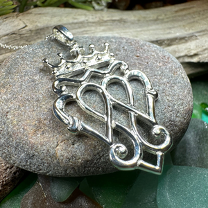 Lovely highly polished sterling silver double heart and crown necklace. This Luckenbooth features elegant lines entwined in a Celtic knot design - a beautiful symbol of everlasting love and loyalty.
