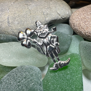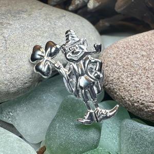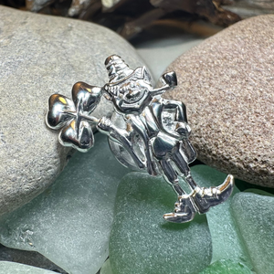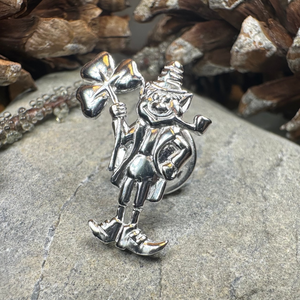 This beautiful Celtic Leprechaun with a Shamrock represents strength, family and heritage. A beautiful pin made in solid sterling silver with bright shining finish