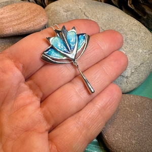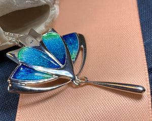 Pendant measures 3/4" x 3/4" on an 18" sterling silver chain. Piece has a pin back so it can be worn as a brooch as well. Hallmarked 925