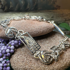 The simple lines of this sterling silver bracelet will remind you of a simpler time. The design is inspired by the great Scottish architect, Charles Rennie Mackintosh, and has come to symbolize Scotland and her art.