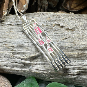 The simple lines of this sterling silver pendant will remind you of a simple time. The design is inspired by the great Scottish architect, Charles Rennie Mackintosh, and has come to symbolize Scotland and her art.