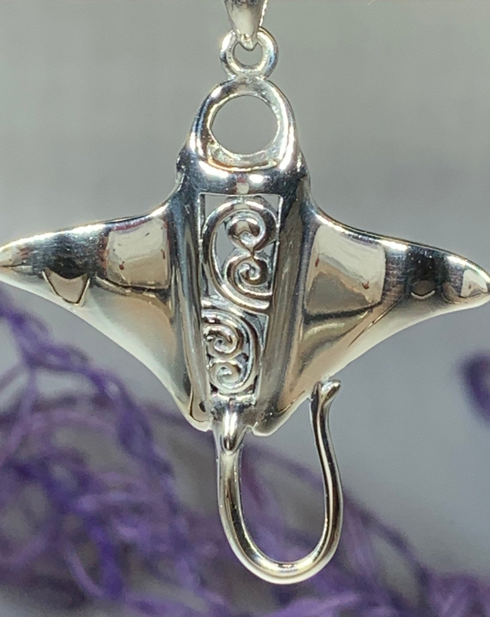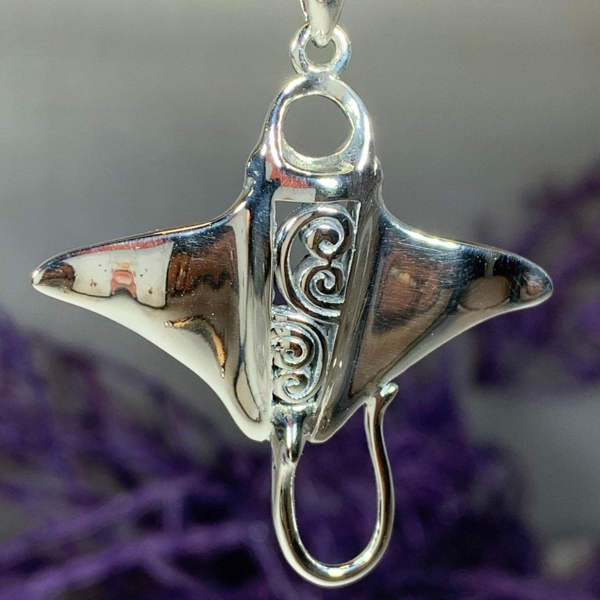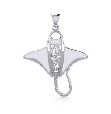 Highly polished, this handcrafted Celtic Manta Ray Sterling Silver Pendant showcases the beauty of nature and the exquisite craftsmanship