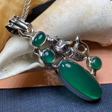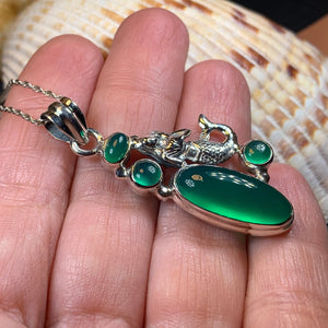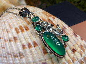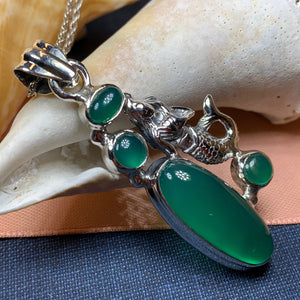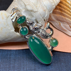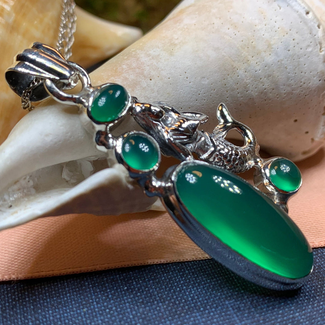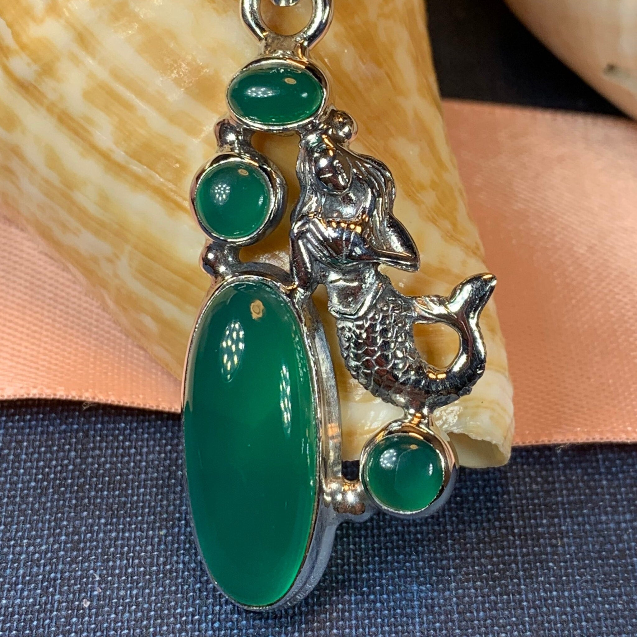 Set next to natural chalcedony gemstones that glow like the deep, green ocean depths, this handcrafted sterling silver mermaid Pendant showcases exquisite craftsmanship and will make a memorable gift.
