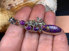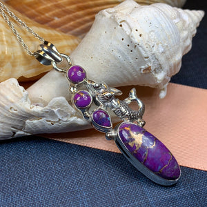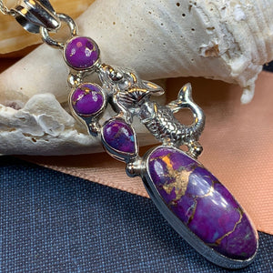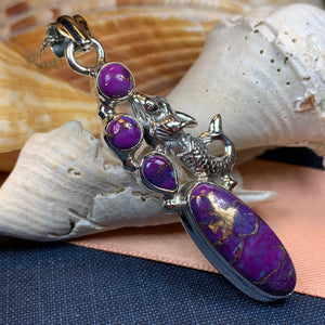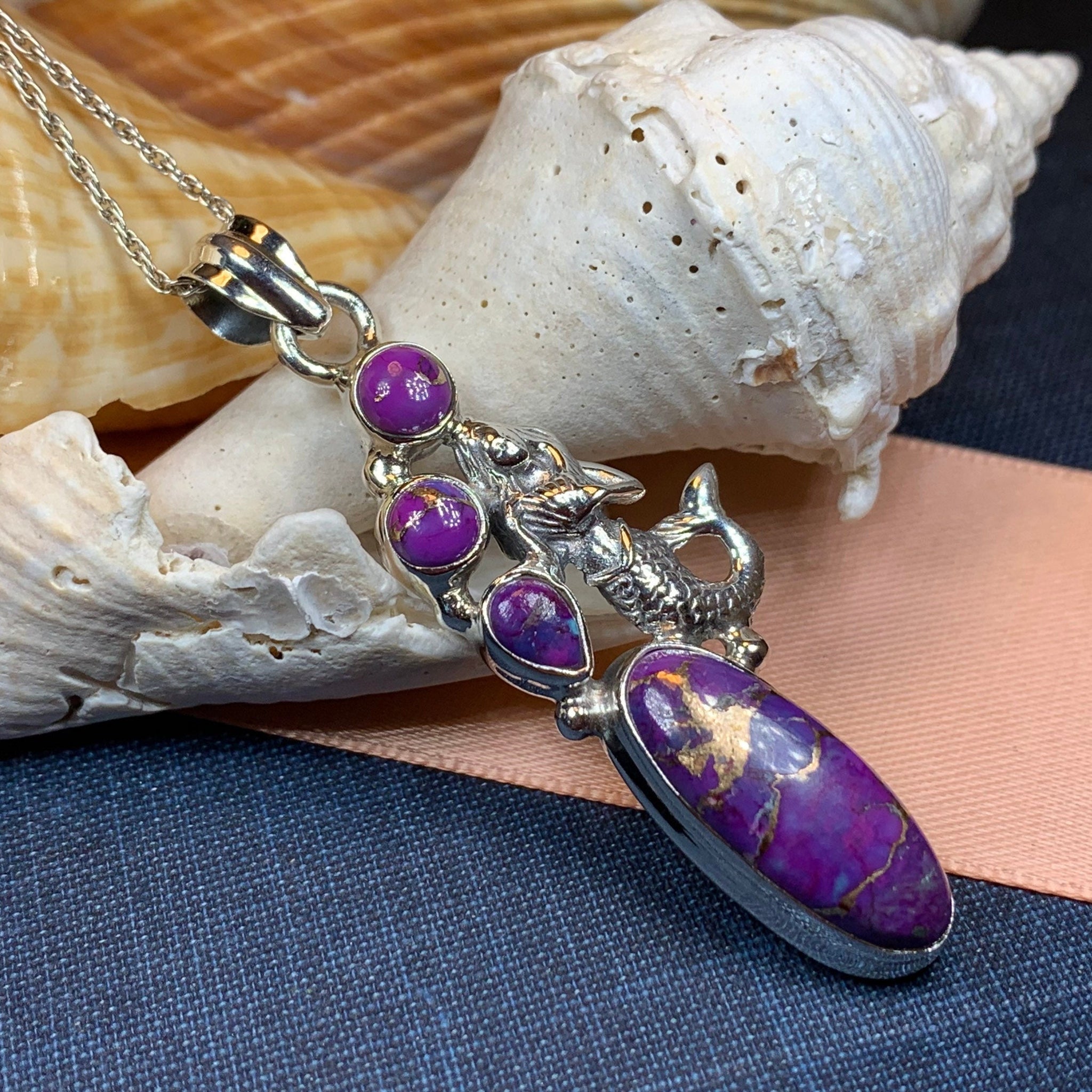 Sitting on a natural amethyst stone "rock", this handcrafted sterling silver mermaid Pendant showcases exquisite craftsmanship and will make a memorable gift.
