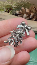 Solid Sterling Silver Brooch of a wreath of mistletoe leaves and berries. Brooch has loop in the back to be worn as a pin or pendant.
