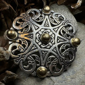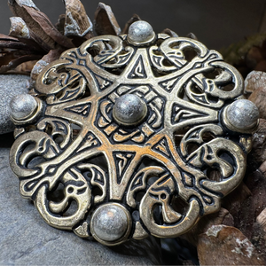 This handmade Anglo-Saxon brooch in in your choice of high-quality bronze or in genuine silver-plated pewter, with the applied bosses in the contrasting material.