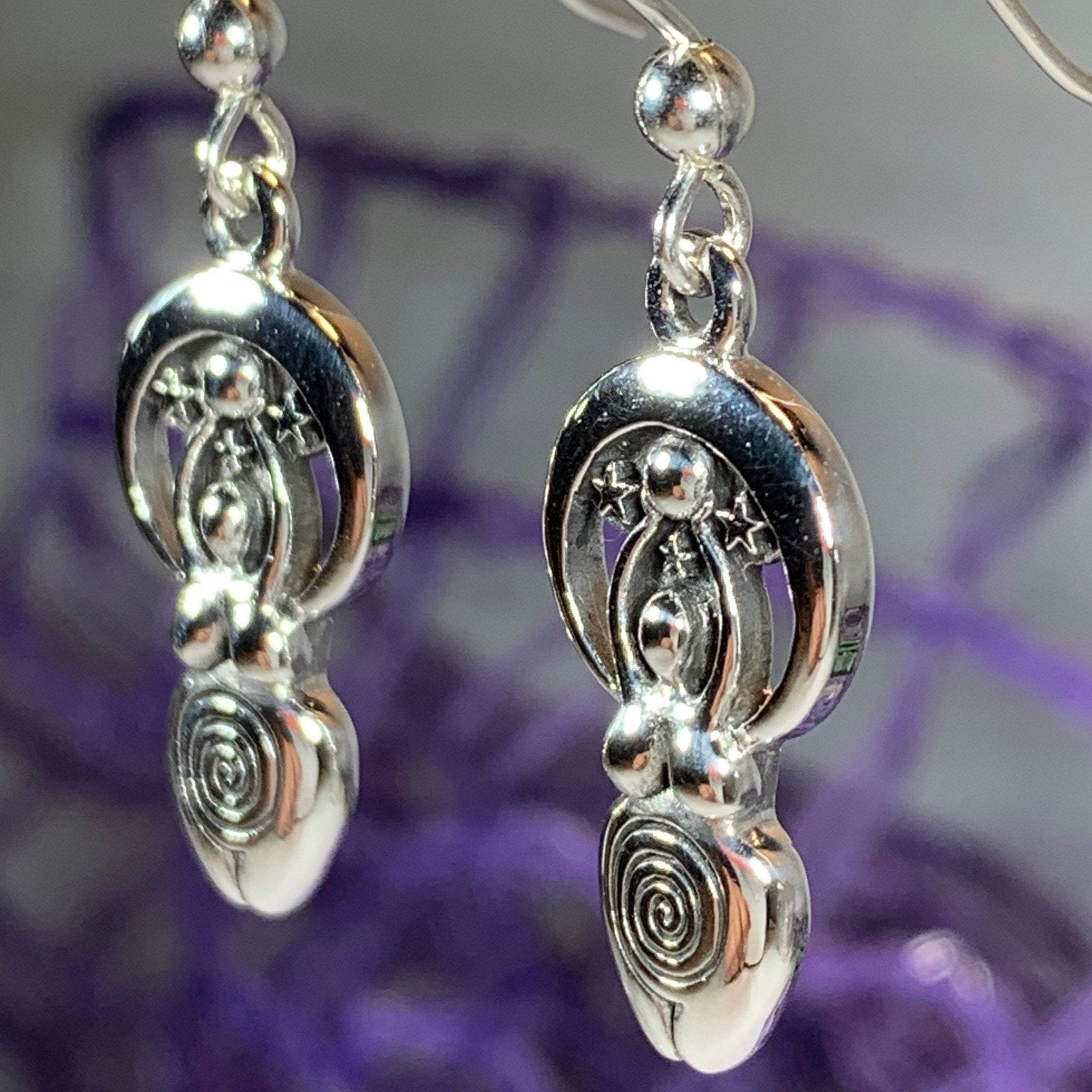 Meticulously crafted from fine sterling silver with beautiful detailing, these Moon Goddess Earrings showcase the beauty of Celtic tradition, modern design, and fine craftsmanship.