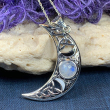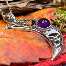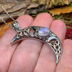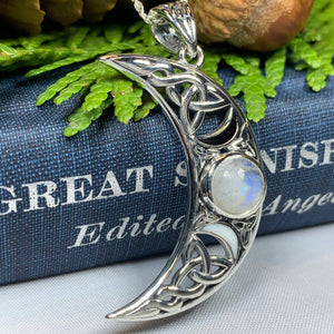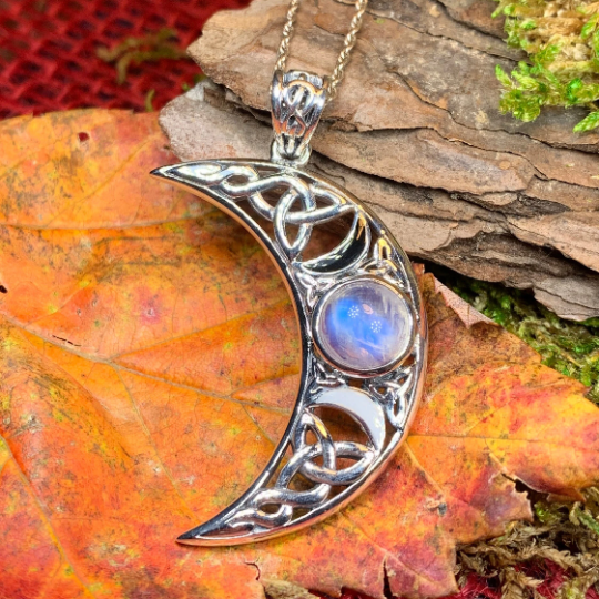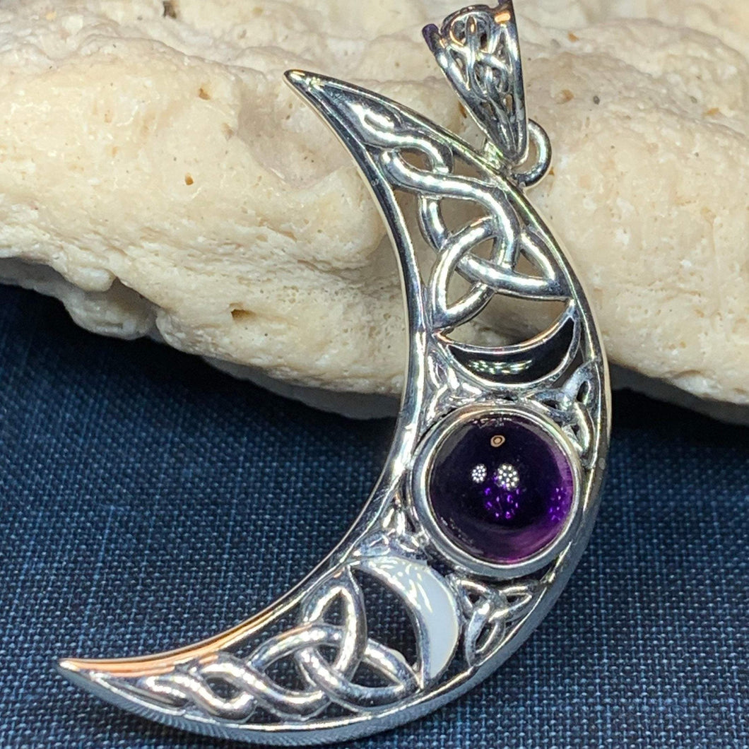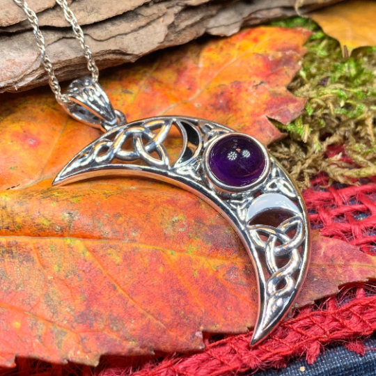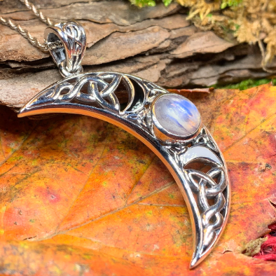 This solid sterling silver crescent moon is adorned with beautiful Celtic knotwork.
