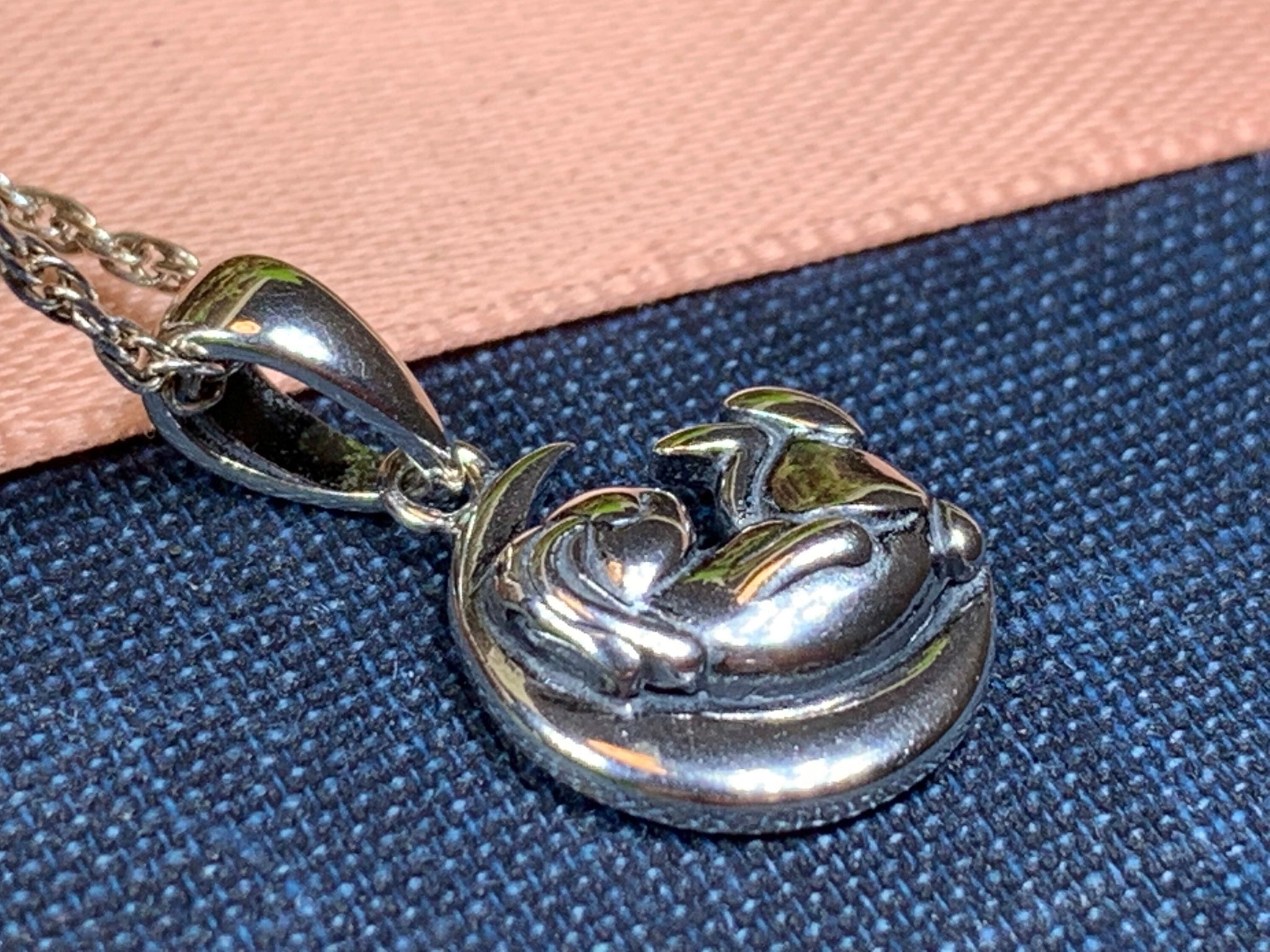 Solid Sterling Silver - A beautiful crescent moon adorned with a sleepy little rabbit on the inside...a beautiful piece on an 18" sterling silver chain.