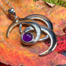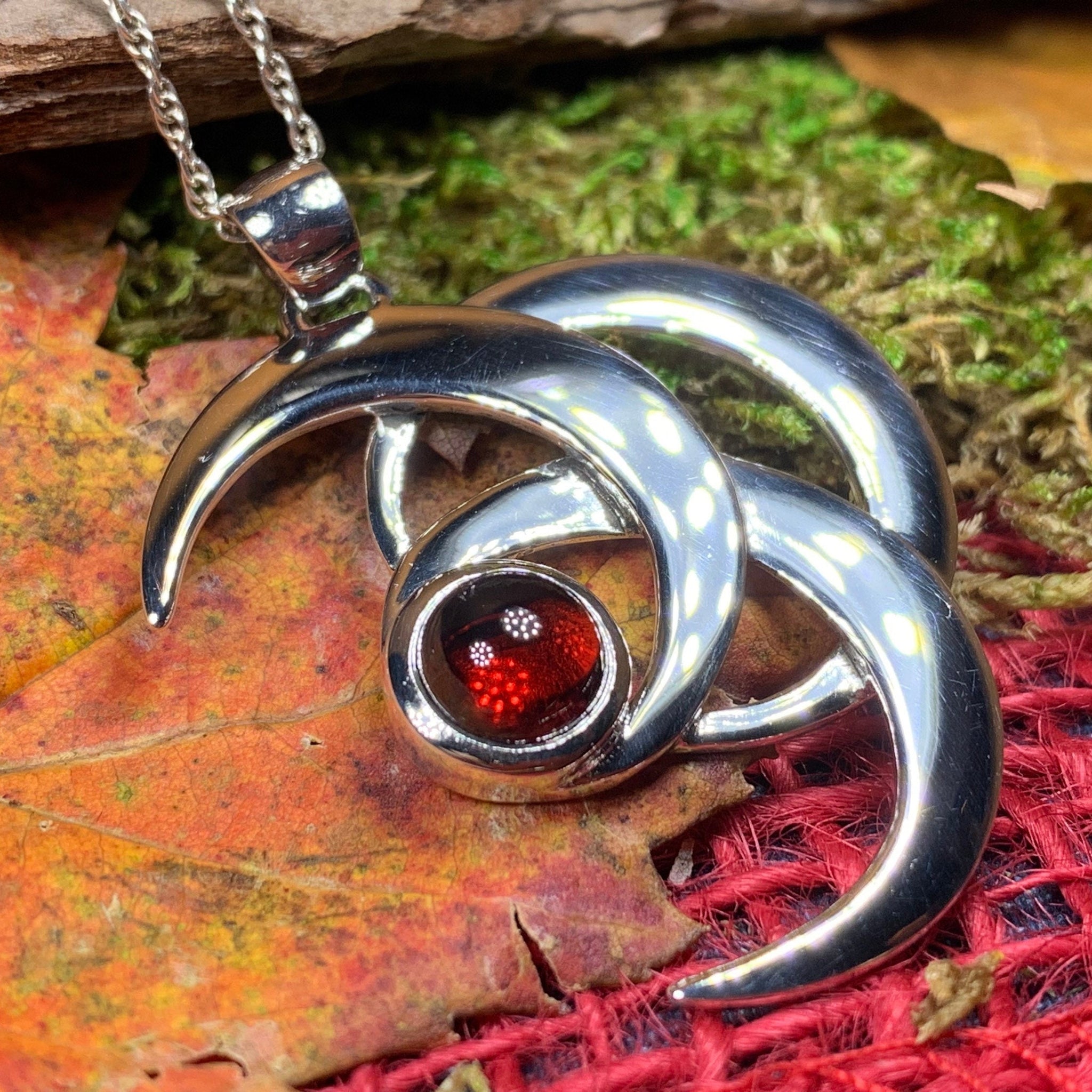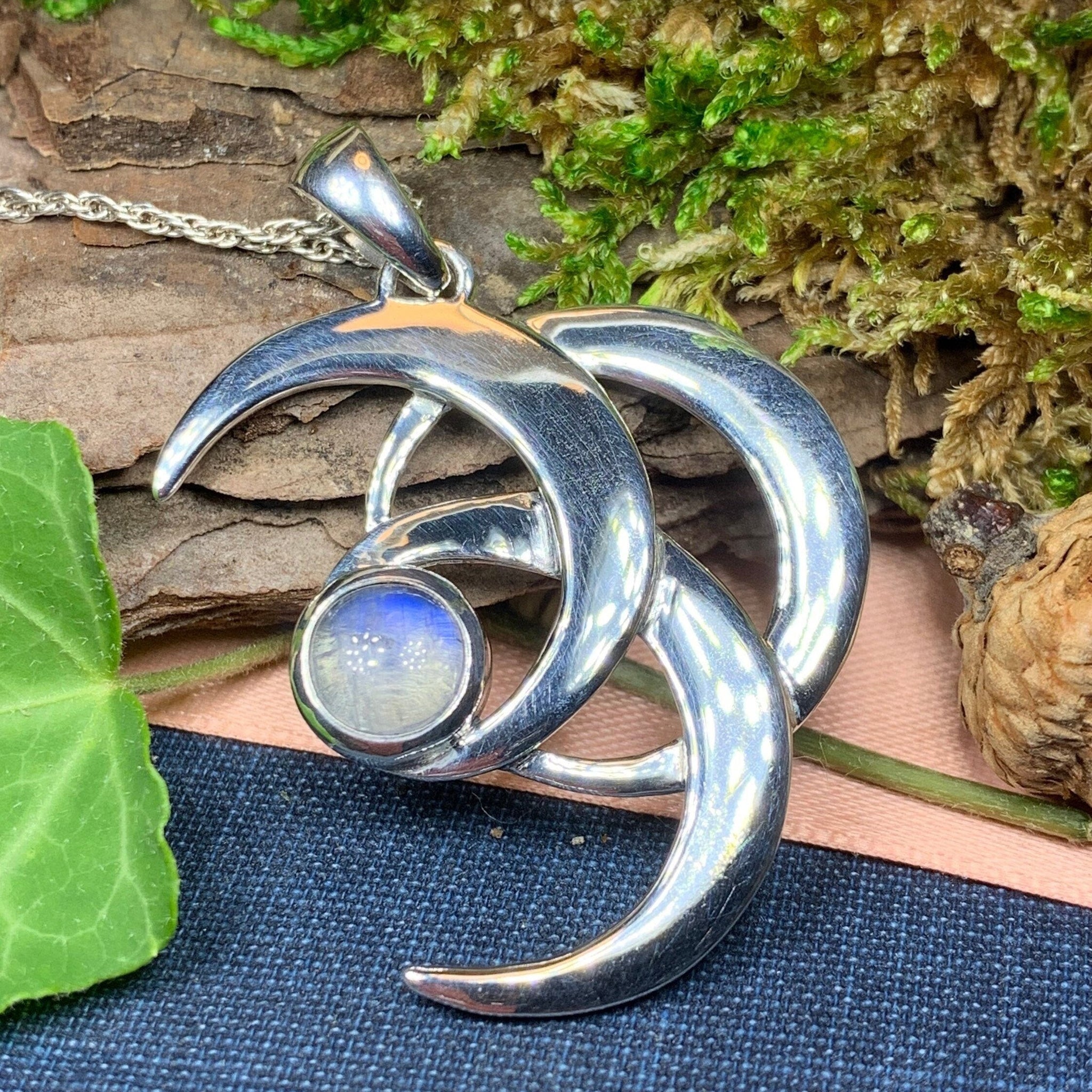 Meticulously crafted from fine sterling silver with beautiful detailing, the Triple Moon Pendant showcases the beauty of Celtic tradition, modern design, and fine craftsmanship.