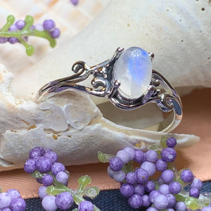 This Solid Sterling Silver Rainbow Moonstone ring with a beautiful oval rainbow Moonstone (1 carat total stone weight).