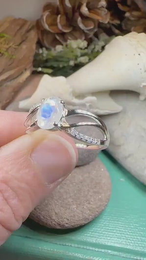 Meticulously crafted from fine sterling silver with beautiful detailing, this Rainbow Moonstone ring showcases the beauty of tradition, modern design, and fine craftsmanship.