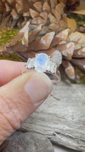This Solid Sterling Silver Rainbow Moonstone ring with a beautiful faceted, oval shaped rainbow Moonstone (2 carat stone).