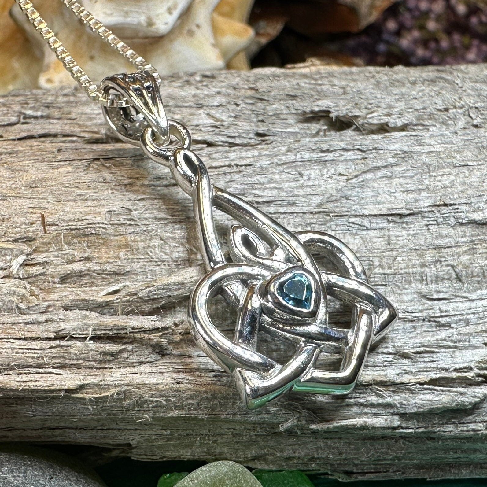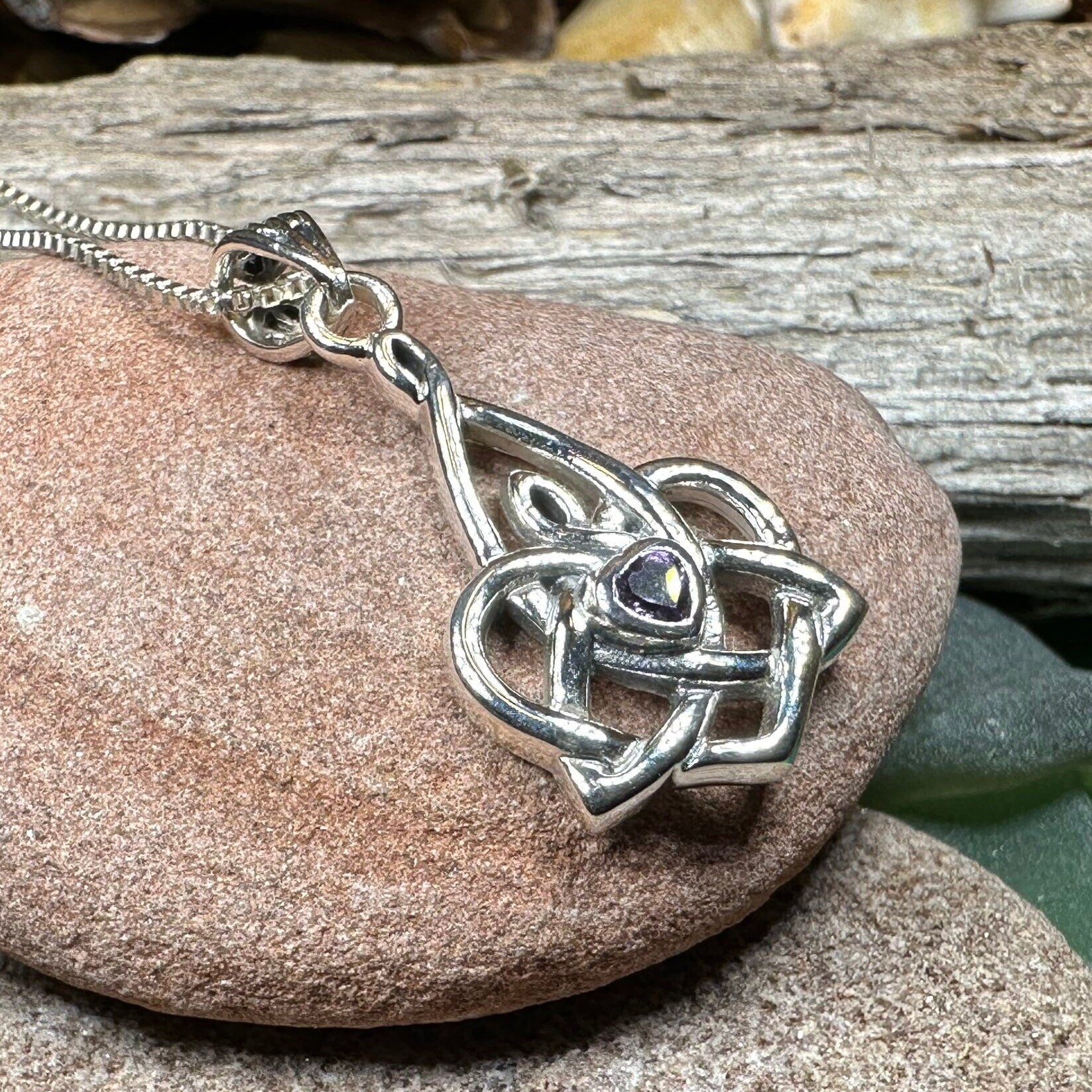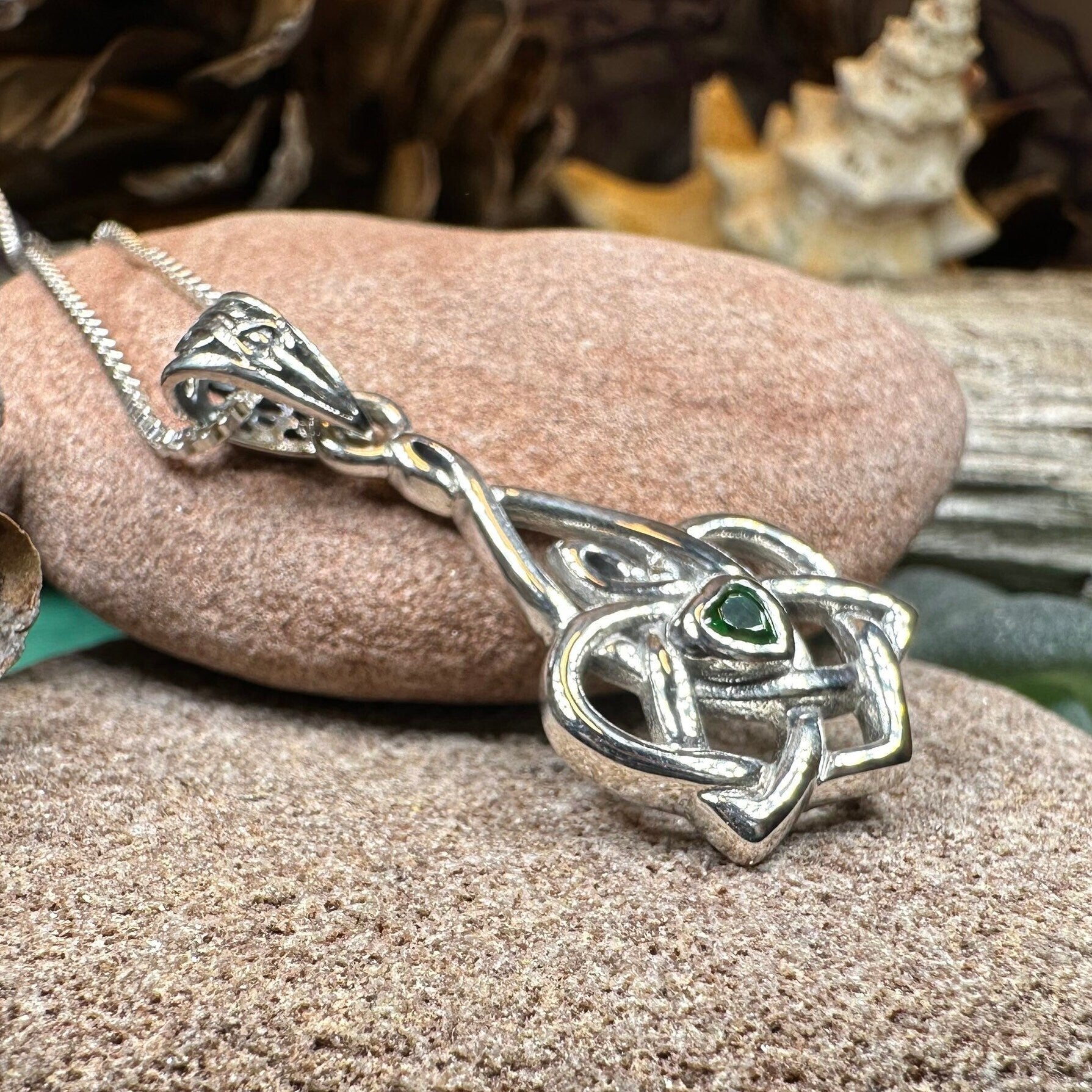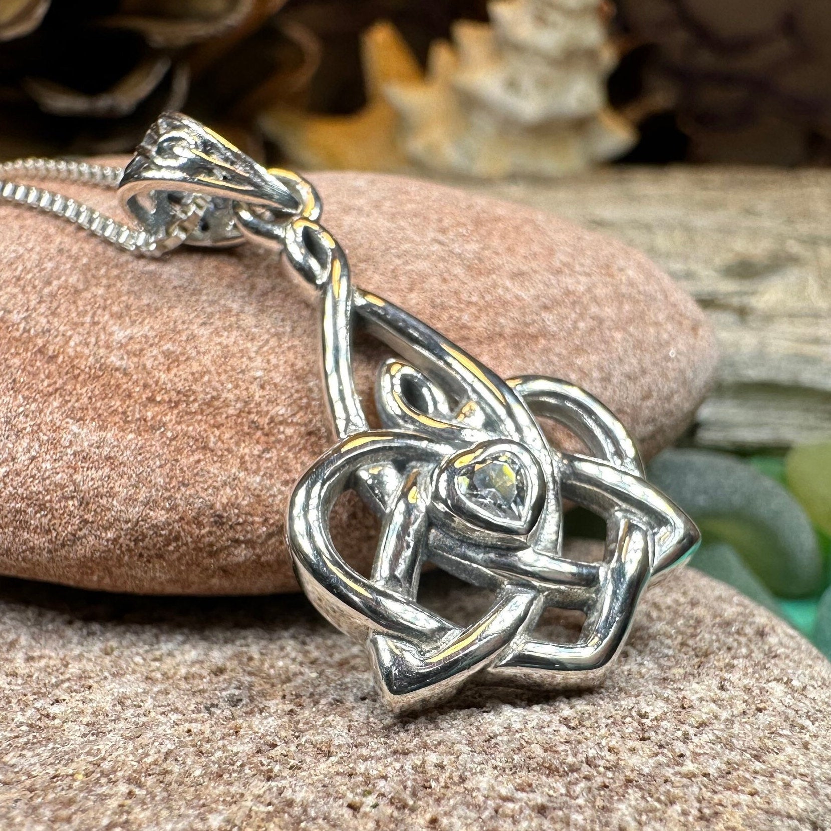 Solid Sterling Silver Mother's Knot Pendant with genuine gemstones.